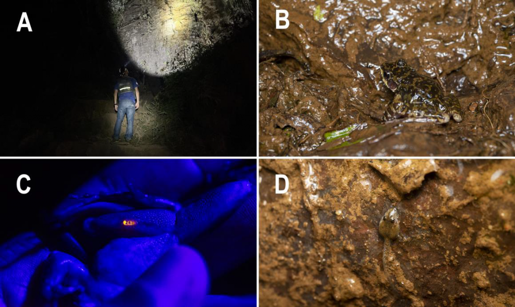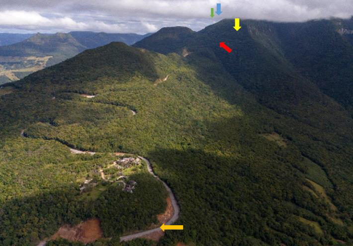 O monitoramento já confirmou a espécie em pelo menos seis trechos marginais à rodovia, entre os km 2+000 e 7+300, com registros de reprodução ativa — incluindo girinos, juvenis e machos em atividade de vocalização. Esses pontos estão dispostos em diferentes gradientes altitudinais, mas sempre relacionados aos microclimas úmidos necessários para a manutenção da espécie (Figura 1).